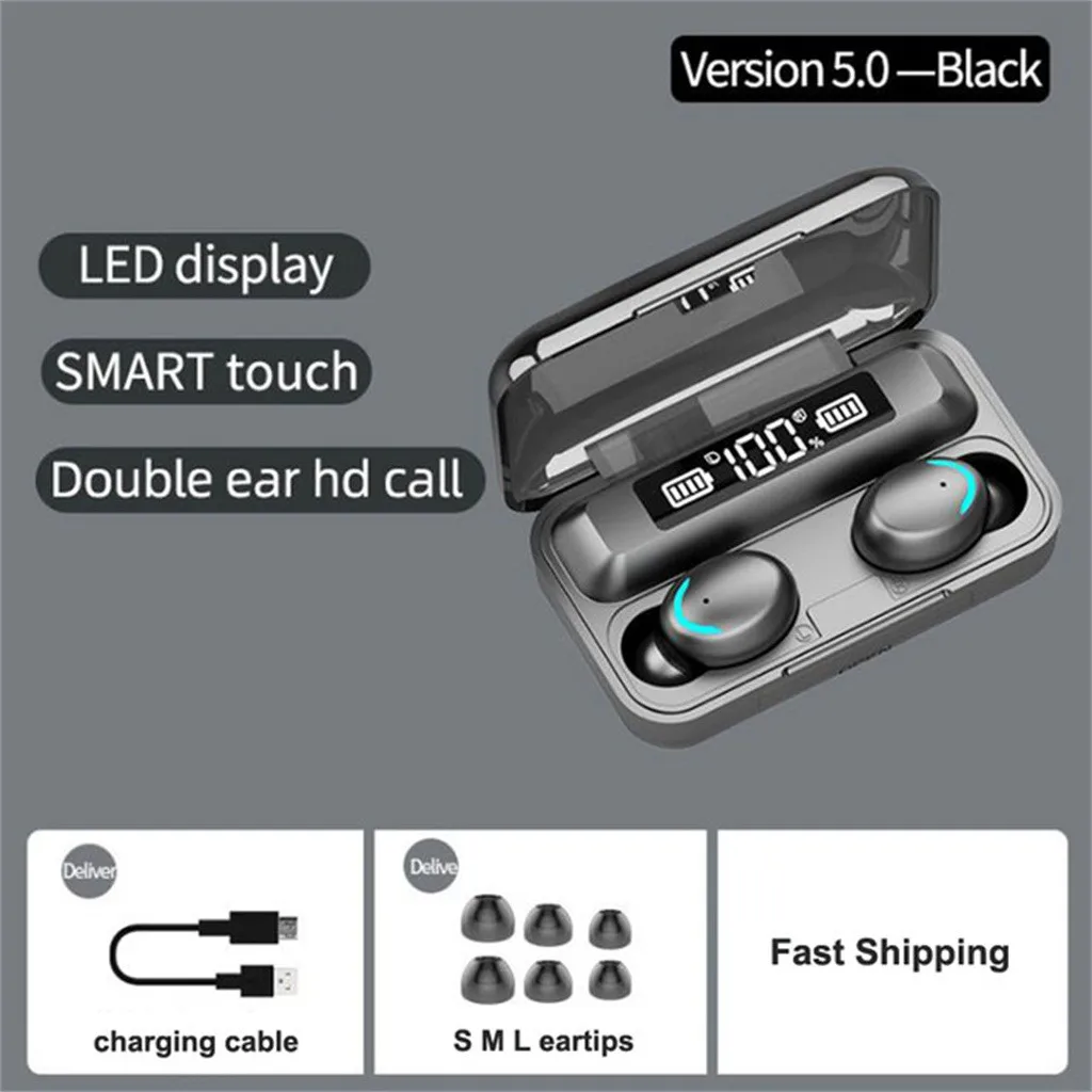 TWS Bluetooth 5,0 наушники 2200 мА ч с зарядным устройством, беспроводные наушники 9D, спортивные водонепроницаемые наушники, гарнитуры с микрофоном