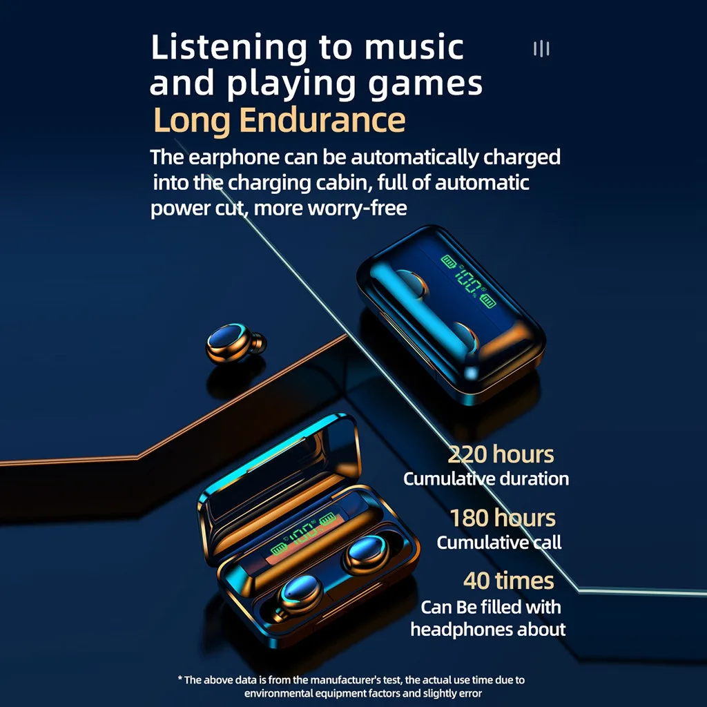 Это настоящий беспроводной Наушники Bluetooth оснащены чипом Bluetooth 5,0, Автоматическое Сопряжение загрузки, Встроенная ИС с активным шумоподавлением, вызов HD и долговечность большой емкости Срок службы батареи. Характеристики этого продукта 14,2 графеновая диафрагма, профессиональная звукопередающая сеть из сплава, Высококачественный звук, интеллектуальное шумоподавление, чувствительность 108 дБ, Бескислородная Медная звуковая катушка. Два способа подключения: Одно/двойное без использования, одно ухо слушать в одиночку, слушать Для Hi-Fi стерео в обоих ушах. Умное сенсорное управление: Автоматическое включение/выключение/ответ/Отклонение/последняя песня/следующая песня/звонок Сири. Обеспечивает 5,0 Bluetooth Игра без задержек, а электрокабину можно использовать как мобильный телефон Кронштейн и аварийный источник питания Мобильный телефон для многофункционального использования. Поддержка наушников Отпечаток пальца, кнопка отклонения С водонепроницаемостью IPX6 Рейтинг, не беспокойтесь о дожде и поте Бинауральный HD звонок, 5,0 Автоматическое Сопряжение загрузки, Встроенный активный шумоподавляющий ИС CVC8.0.Параметры: