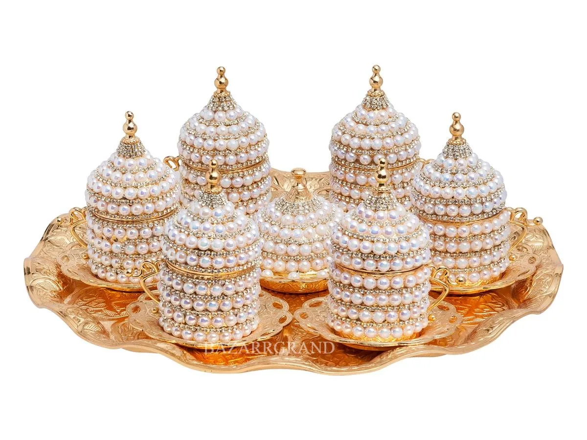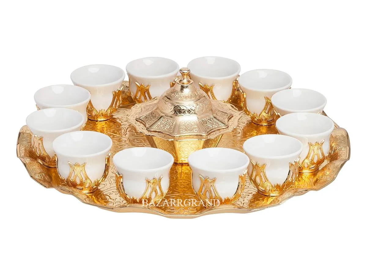 Роскошный турецкий фарфоровый коричневый набор MIRRA SET-белый (металлический поднос) Золотисто-серебристый круглый поднос ваш кофейный набор без кофе SH FREE SHİPPİNG
