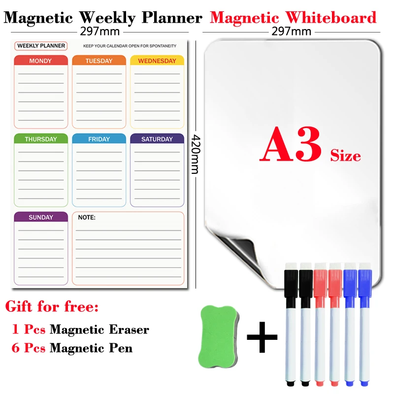 Магнитный Еженедельный планировщик формата A3, стираемый сухой календарь, доска для дома, школы, меню, наклейки на холодильник, доска объявлений