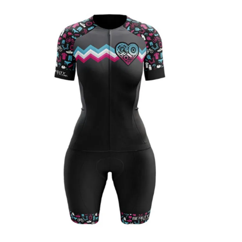 Женский спортивный костюм для велоспортаОн обеспечивает лучшую производительность, защиту в соревнованиях, тренировках и катании средней и длительной продолжительности, позволяя кататься на велосипеде с большей мобильностью и комфортом.Анатомическая посадка, идеальное прилегание к телуЗащита от УФ-лучейПротив пота, превосходное поглощение и быстрое высыханиеАнтибактериальная защитаПовышенная прочность цветаЛазерная режущая подкладкаЭластичный ремешок с противоскользящим гелем (нога)Плоские спинки на рукавах и подоле ног минимизируют трение, вызванное трением. Эта рубашка изготовлена из высококачественной ткани и фокусируется на деталях, эргономичная посадка для тела, подходит для всех уровней любителей велоспорта и плавания.