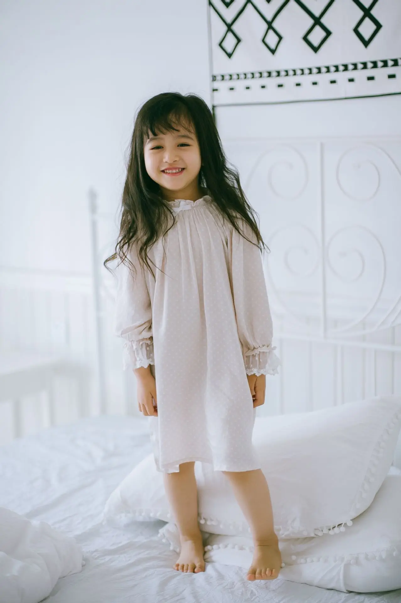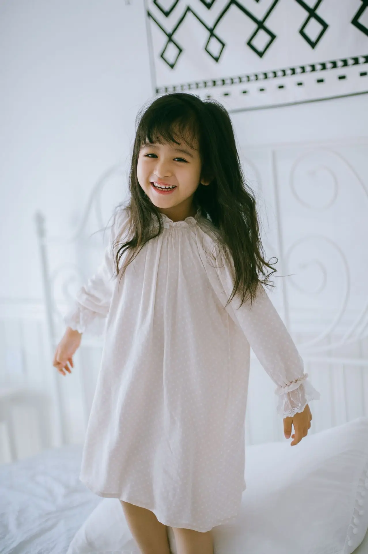 Детское платье в стиле Лолиты для девочек; Ночные рубашки с гофрированным воротником; Винтажные детские ночные рубашки в горошек; Ночная рубашка; Одежда для сна; Детская одежда