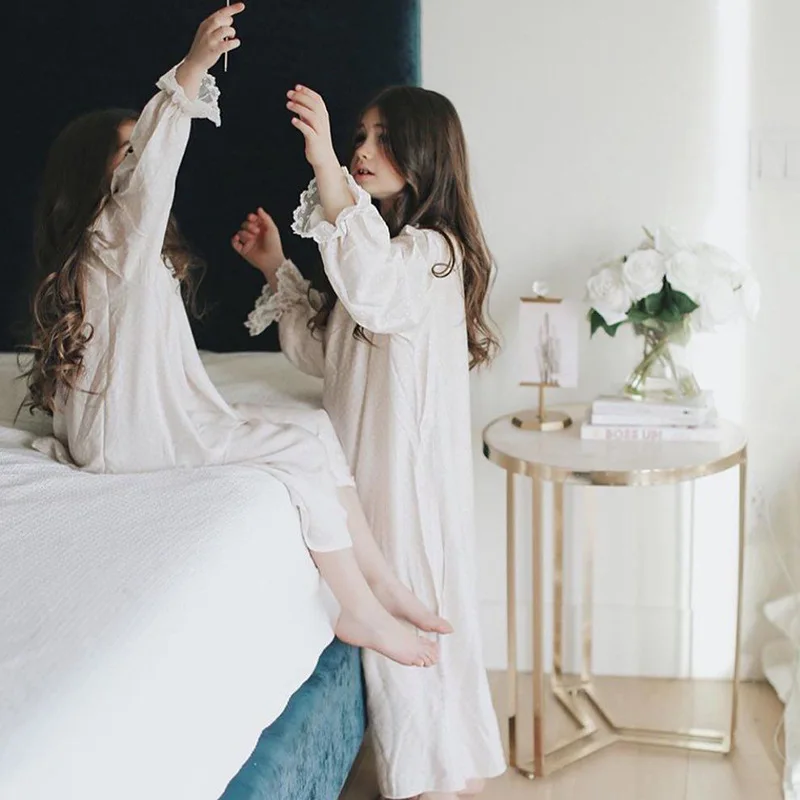 Детские стильные винтажные кружевные ночные рубашки в стиле принцессы