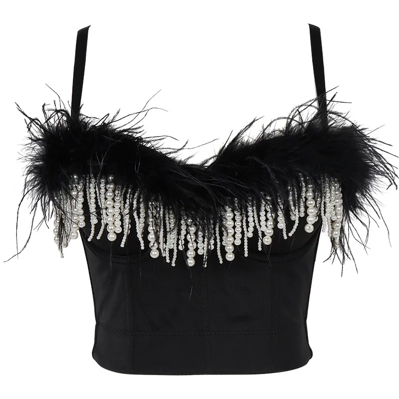 Топ женский, черный, на бретельках, с открытой спиной, с бусинами, летний, 2021
