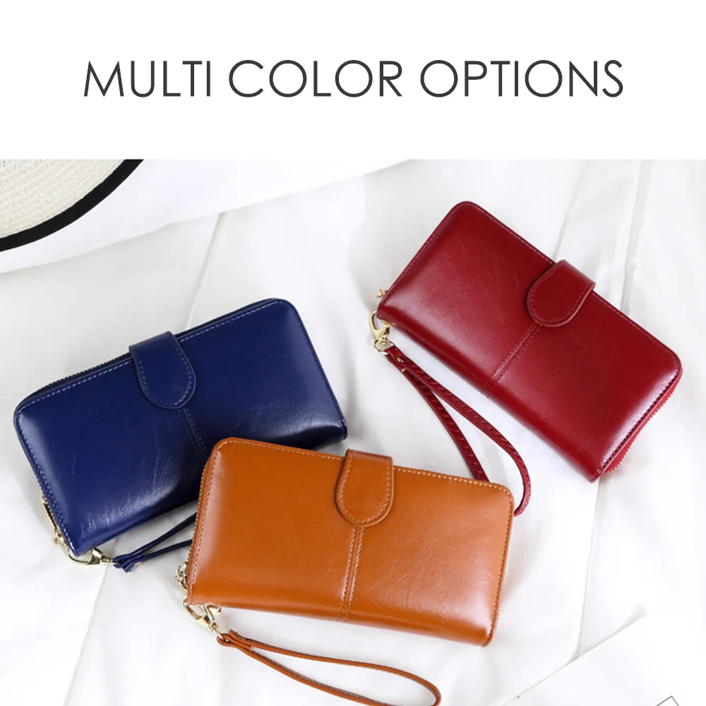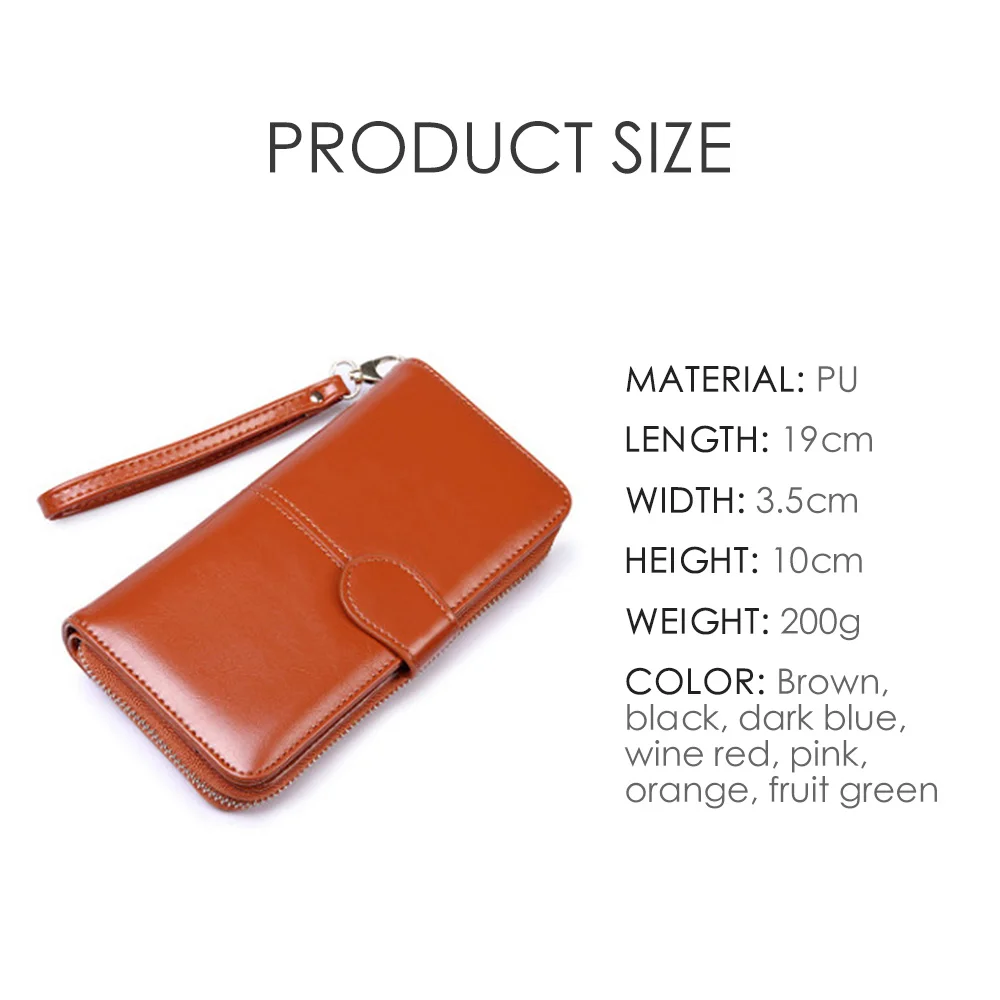 Кошелек женский из вощеной промасленной кожи, вместительный, с отделением для монет на молнии, 2021