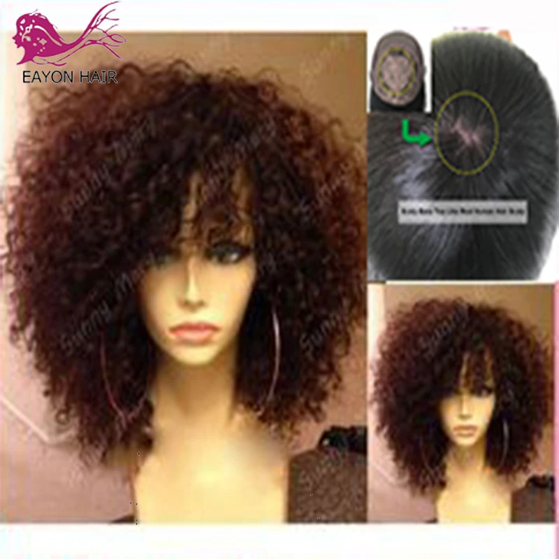 Парики Eayon 200 плотность кудрявая кожа головы с челкой без клея короткие бразильские кудрявые шелковые волосы для кожи головы парики для женщин