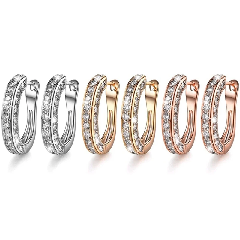 Роскошные свадебные ювелирные изделия из австрийского хрусталя, серьги-гвоздики для женщин, U-образные женские серьги для подарка