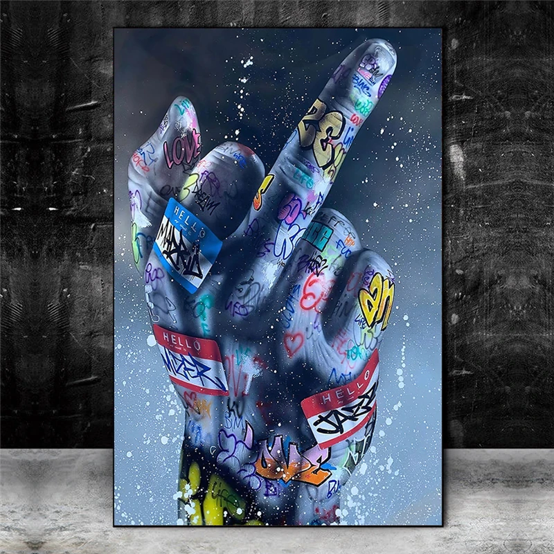 Плакаты и принты на средний палец в уличном стиле, художественные настенные картины с граффити, холст, настенное украшение для дома