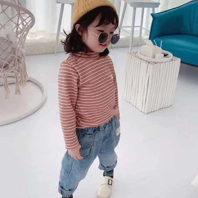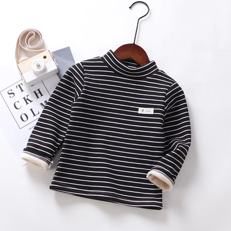 Детская одежда, осень и зима, футболка с высоким воротником и длинным рукавом, мужская и женская полосатая футболка, плюшевая теплая нижняя рубашка