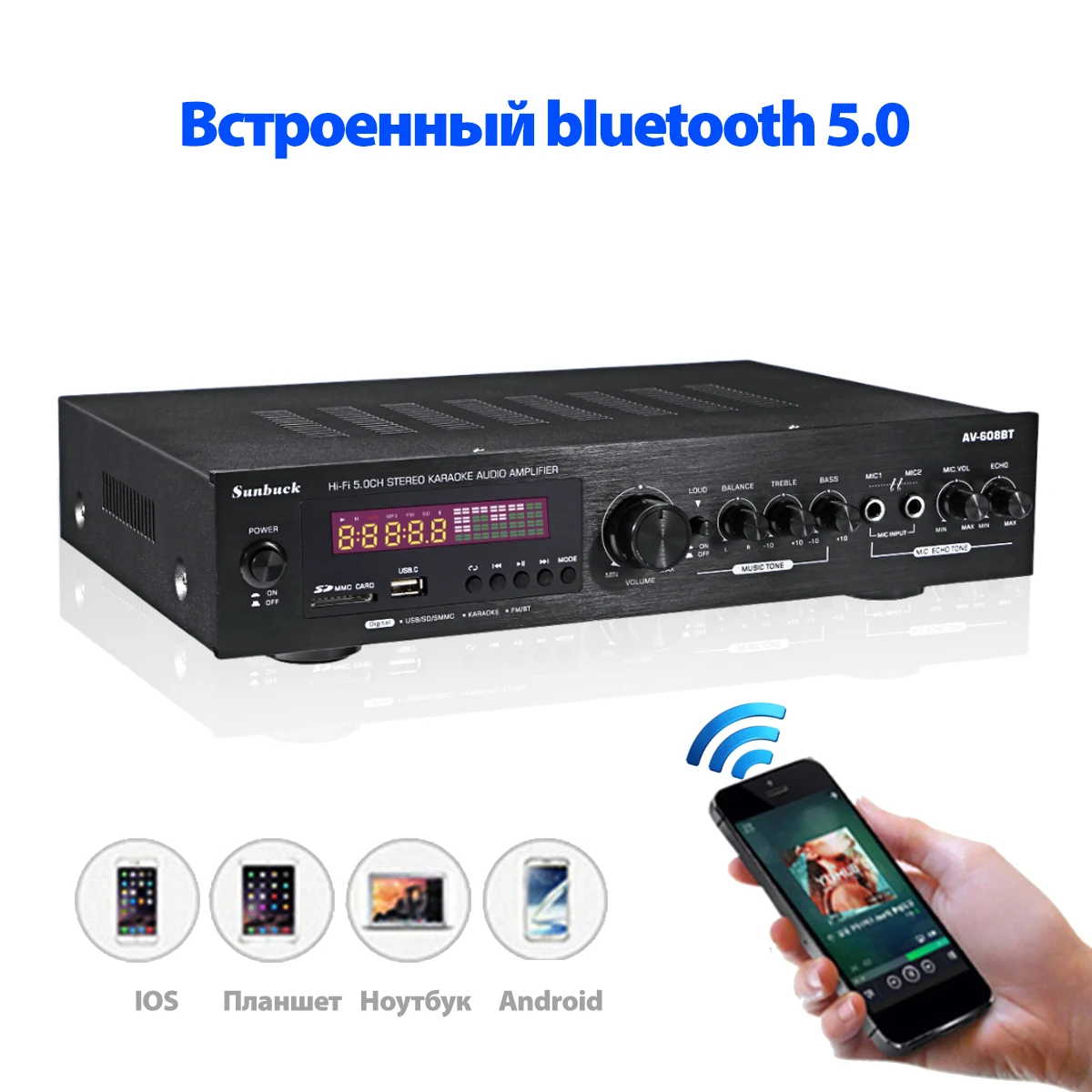 Усилитель мощности звука SUNBUCK 2000 Вт, 220 В, 110 В, Bluetooth 5,0, поддержка FM, USB