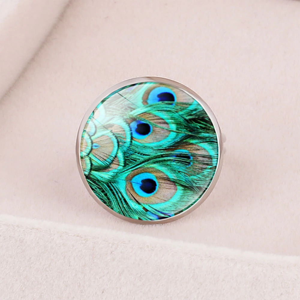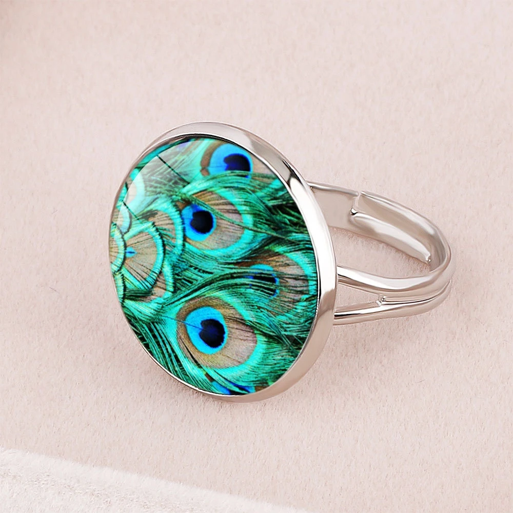 FIMAODZ перо павлина кольцо Винтаж стеклянный купол ручной работы Р...