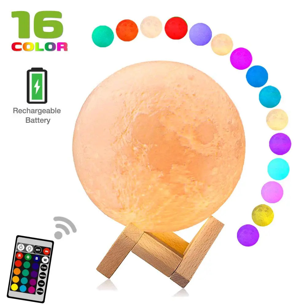 Лунная лампа 16 цветов RGB, 16 цветов могут мигать или блекать или стробоскопировать, сказочные и креативные декоративные огни, идеальные декоративные огни или подарок на Рождество, День благодарения, День Рождения вечерние, свадьба, юбилей, любовник, дети, детская спальня, гостиная, столовая и наружное украшение, любимый подарок для ваших друзей или любимых
