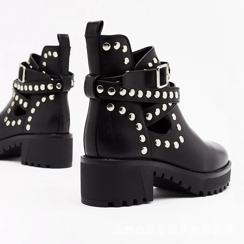 PRETO BRANCO2021 г. Весенние рыцарские сапоги непромокаемые сапоги на толстой платформе с вырезами Женские сапоги с закругленным носком и заклепками GYY