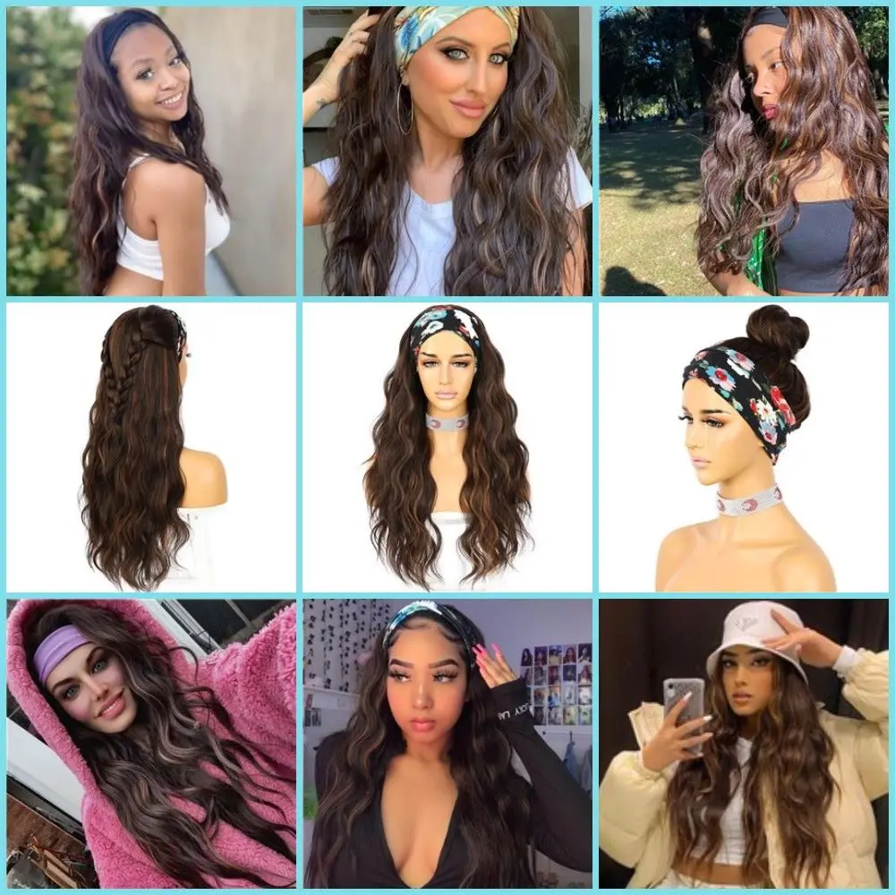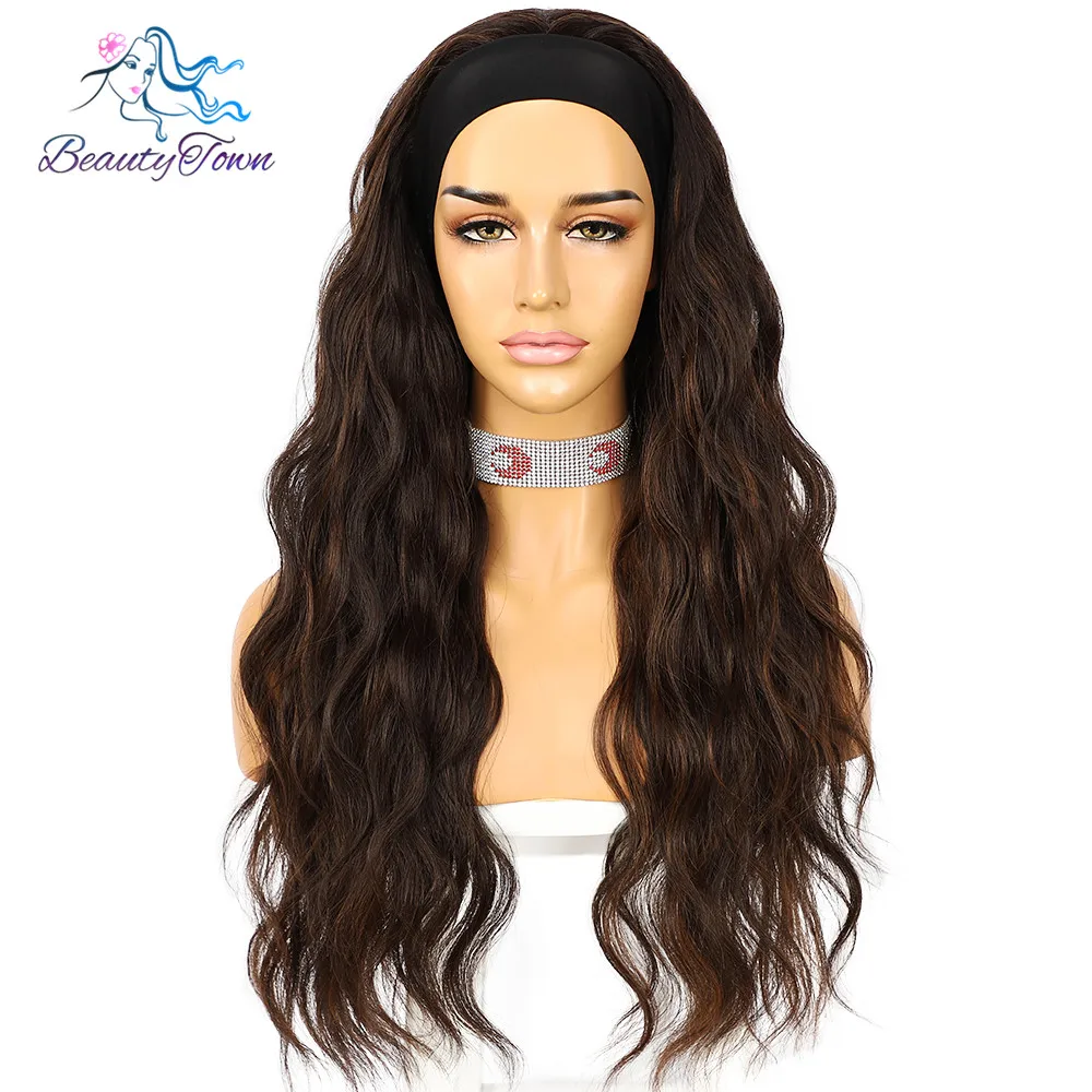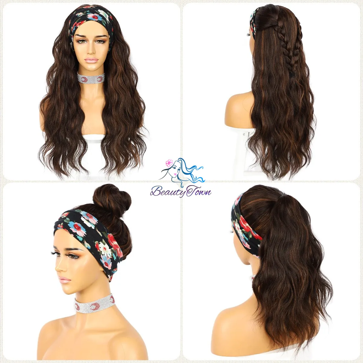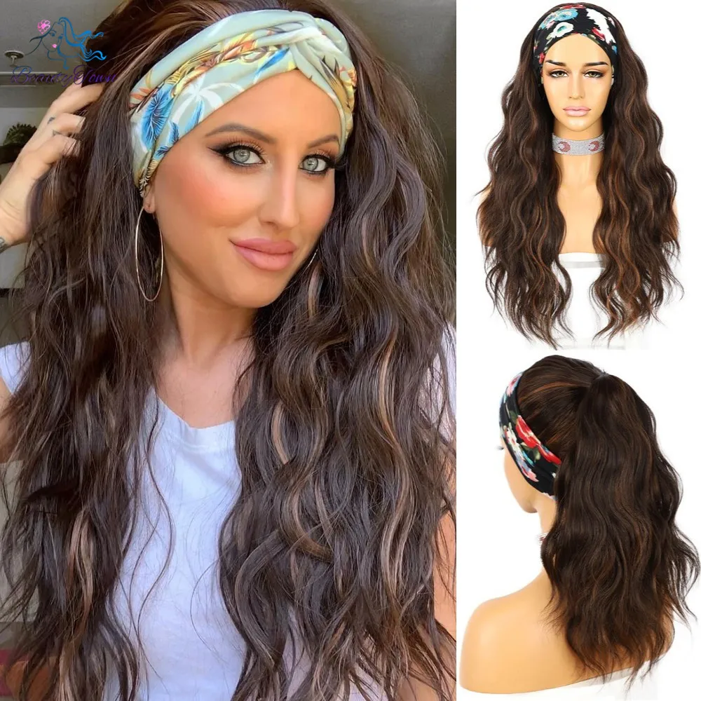 Повязка на голову JBrown с длинной волной для женщин, манекен для шарфа парика для ежедневного использования, свадьбы, вечеринки, путешествий, праздников, парик с головной повязкой, 2 шт. в подарок