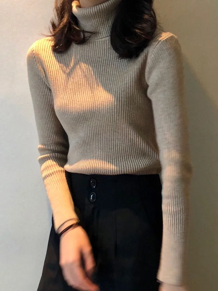 Пуловер женский зимний трикотажный, с высоким воротником и длинным рукавом
