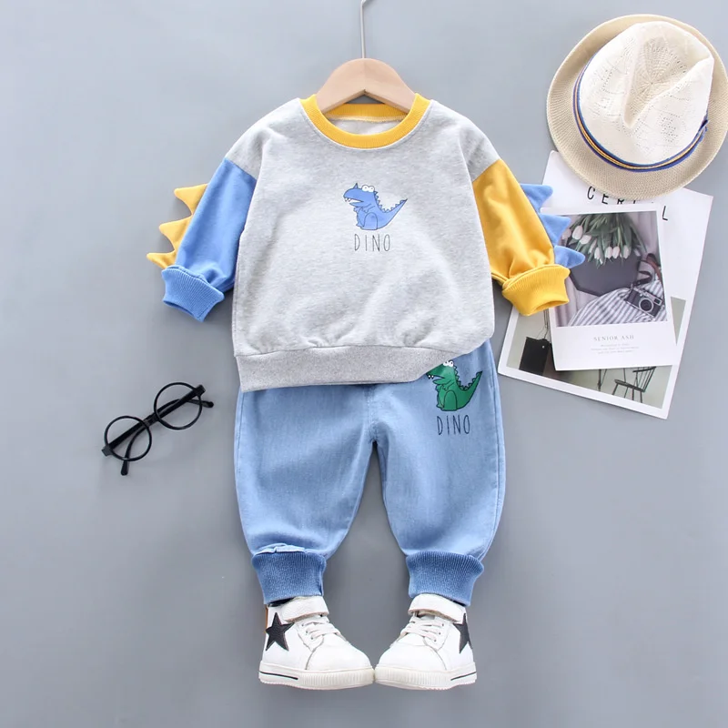 Новинка, весенне-Осенняя детская одежда, футболка с мультяшным рисунком для маленьких мальчиков и девочек, штаны, спортивный костюм для младенцев, 2 шт.компл., повседневная одежда для малышей