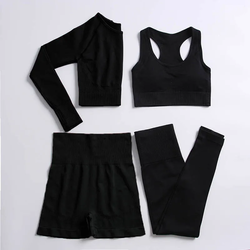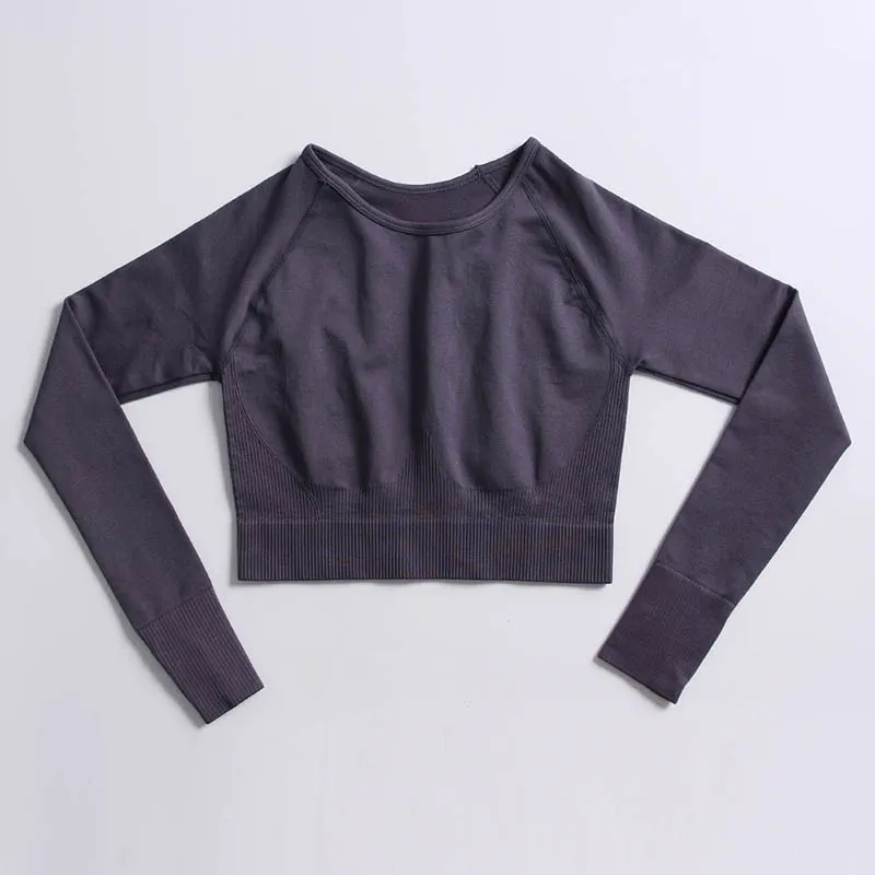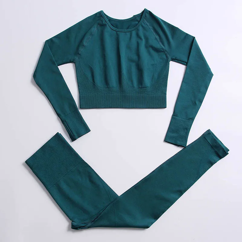 Женская спортивная одежда, укороченный Топ с длинным рукавом, леггинсы для тренажерного зала, бесшовный спортивный костюм, спортивные костюмы для фитнеса, облегающие для тренировок