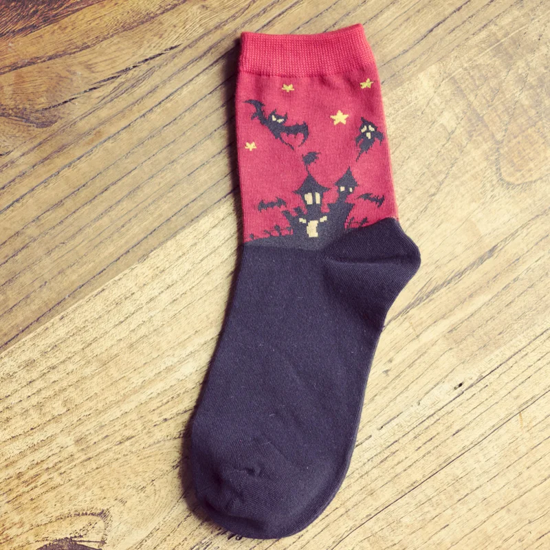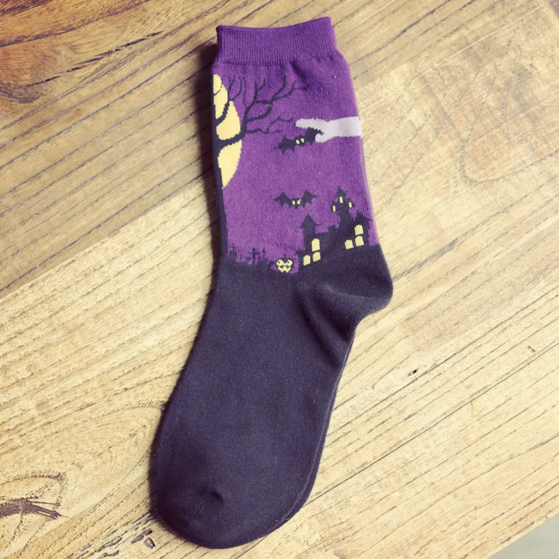 Harajuku милые зимние осенние носки новые женские носки без пятки на Хеллоуин для женщин, модные хлопковые носочки с EUR35-40 фиолетовый детские носки с принтом