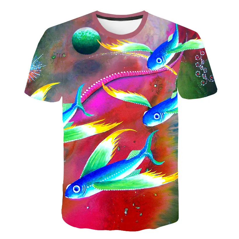 Футболка мужская, с 3D-принтом рыбы, с цифровым тропическим принтом...