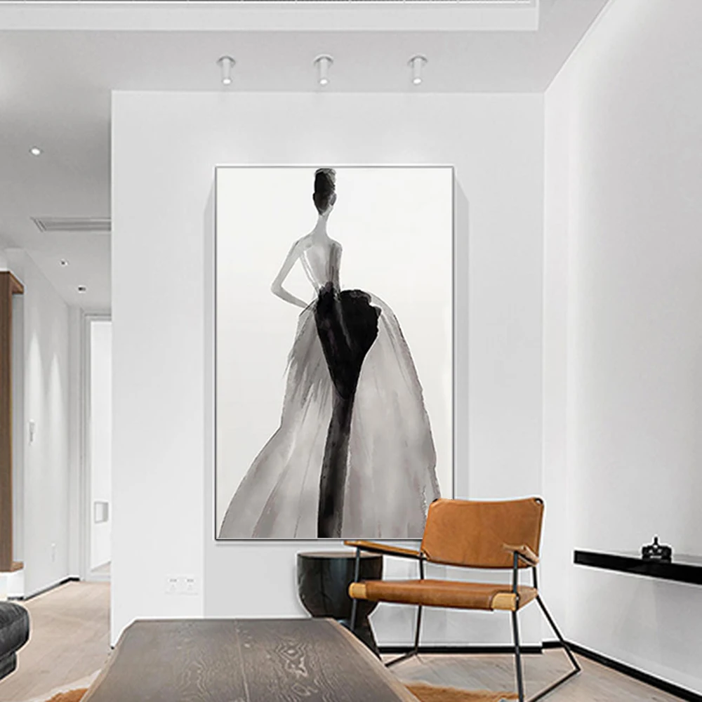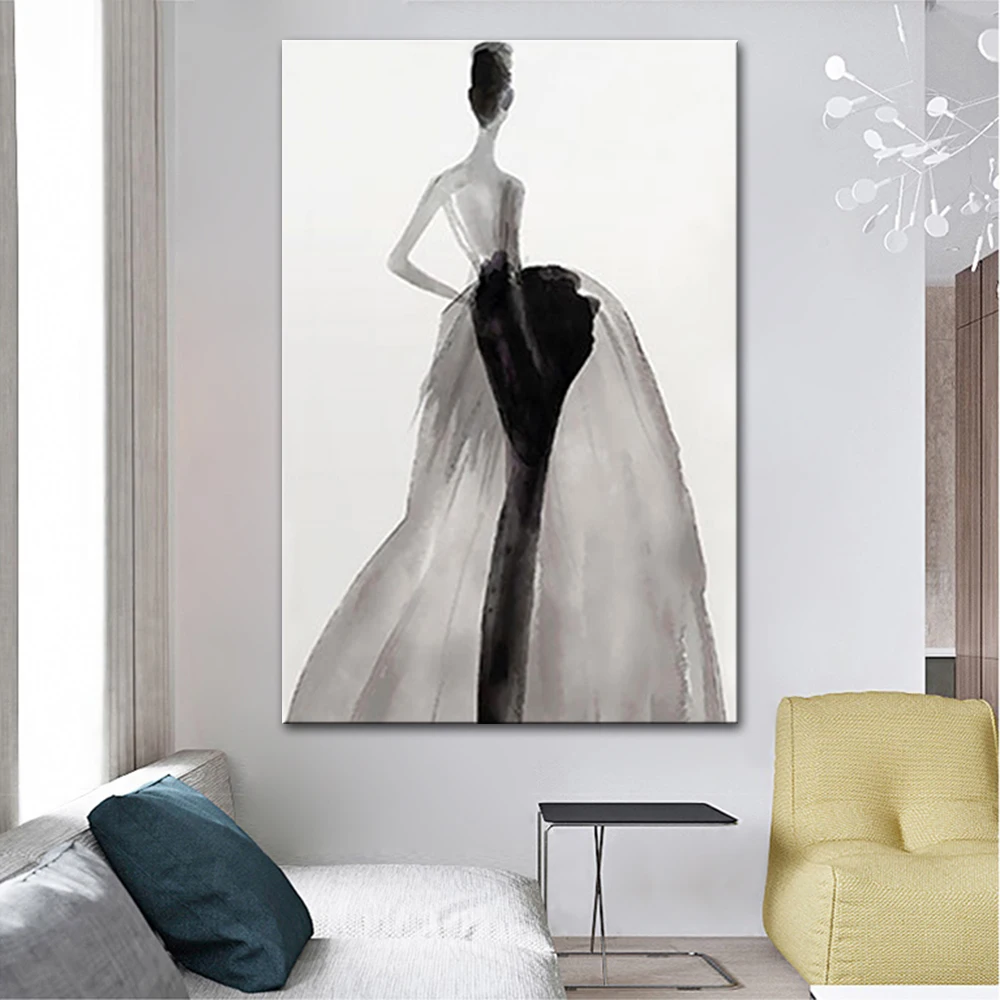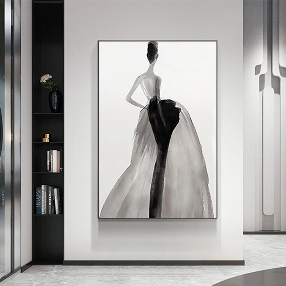 Картина на стену Mintura для гостиной Масляные картины на холсте Ручная роспись Женщины в черном платье с вуалью Декор отеля искусство без рамки.