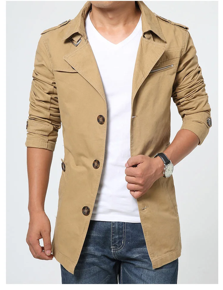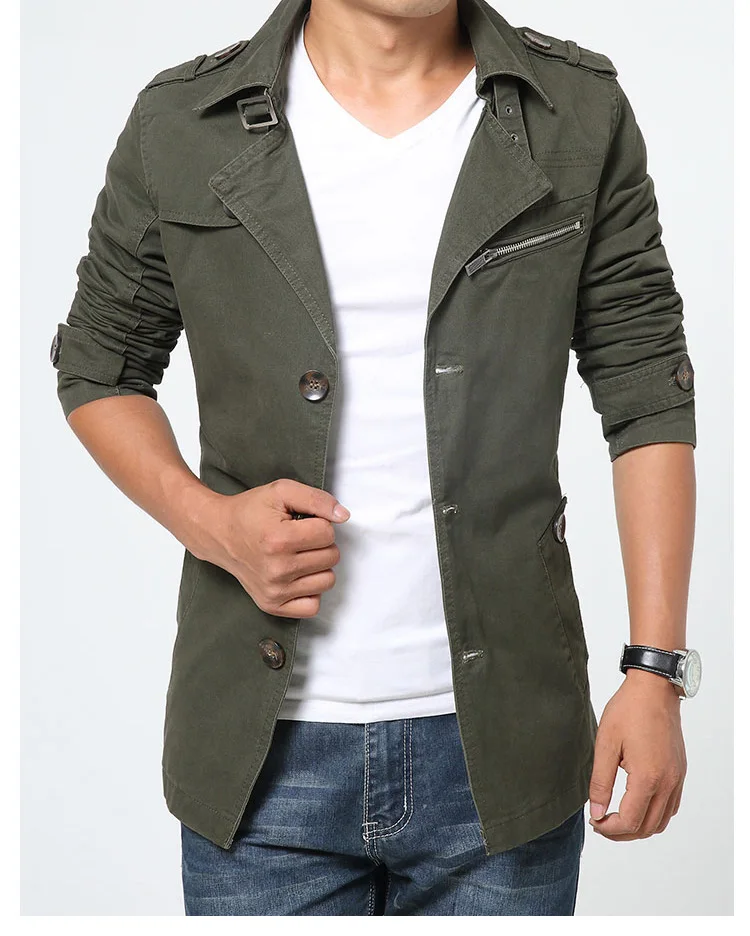 Куртка мужская однотонная хлопковая, Повседневная модная брендовая одежда, Тренч, большие размеры 19, осень-весна