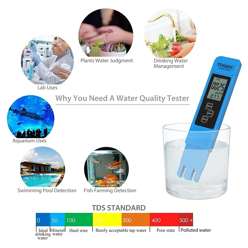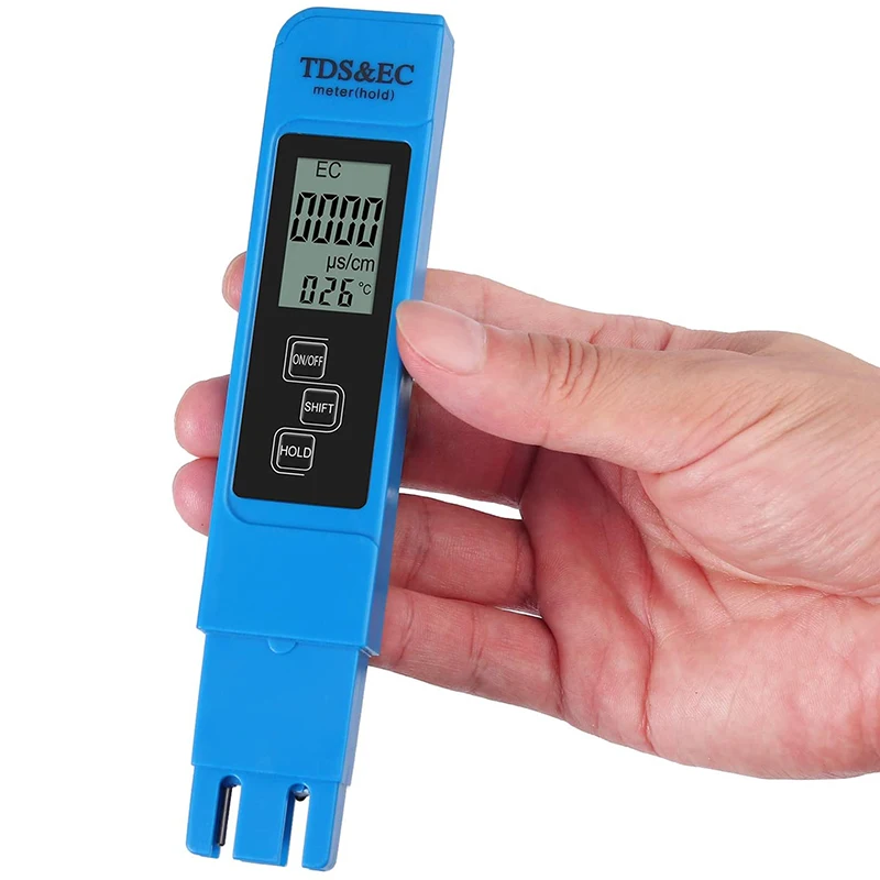 Обеспечивает точные и надежные показания теста: 3-в-1 цифровой измерительный прибор TDS обеспечивает точные показания для TDS (всего растворенные твердые вещества) EC (электропроводность) и температуры. Профессиональный, точный и точный 3-в-1 TDS, EC, и Температура воды метр. Измеритель TDS имеет автоматическую компенсацию температуры в режиме измерения. 9 минут без работы, счетчик автоматически отключится. Экономия энергии, увеличение срока службы батареиМногомодовое преобразование: прибор TDS EC meter в общей сложности 4 различных режима, нажмите клавишу SHIFT, которая может быть преобразована между различными режимами. Функция памяти режима, каждый режим загрузки-это режим по умолчанию, используемый перед выключениемБлокирует чтение, что упрощает запись: большой, легко читаемый ЖК-экран и Функция удержания данных делает чтение и запись оснасткой. «Удерживайте» автоматическую блокировку, «SHIFT» автоматическое преобразование, автоматические замки 5 минут. Нажмите клавишу SHIFT, пока значение заблокировано, чтобы просмотреть результаты измерений для различных режимов. Время измерения быстрое, из-за изысканных датчиков открытого типа, 5 секунд в комплектеРазмер кармана: TDS meter-это профессиональный инструмент для проверки уровня воды, простота в эксплуатации, модный внешний вид, маленький размер и легко положить в карман! Для современного рынка объем самый маленький, легкий портативный. Разумный дизайн, электрод ручки может быть непосредственно вставлен в водный раствор, измерен его. Компактный размер, который позволяет брать в любом местеШирокое использование: идеально подходит для всех испытаний качества воды, очистки воды, регулирования сточных вод, аквакультуры, гидропоники, лабораторных и научных испытаний, бассейнов, экологического тестирования, коллоидного серебра, очистки воды и многого другогоФункция блокировки: позволяет легко читать и записывать, нажмите кнопку «HOLD», затем удалите из тестового раствора.4 режима отображения: Нажмите кнопку переключения: TDS - ppm & °C, EC - μs/cm & °C, TDS - ppm & °F, EC - μs/cm & °F.Функция автоматического отключения 5 минут, поэтому батарея не будет работать.Подсветка: нетНомер модели: EC MeterТип дисплея: ЦифровойФункция: TDS/EC/TEMP 3 в 1Диапазон измерения проводимости: 0 - 9990 мкс/смДиапазон измерения TDS: 0 - 9990 ppm (части на миллион)Градусов по Цельсию: 0,1-80,0 °CФаренгейт: 32,0-176,0 °FТочность: ± 2%Цвет: синийМатериал: пластикРазмер: 15*3 см1: Снимите защитную крышку электрода перед использованием2: Нажмите кнопку ВКЛ/ВЫКЛ и погрузите счетчик в раствор. (Раствор не должен превышать линию погружения)3: после того, как цифровой дисплей будет устойчивым, нажмите кнопку удерживания и выньте его из решения для проверки результата4: протрите электрод после использования, выключите счетчик и замените защитный колпачокПосылка:1 шт. * TDS EC метрТолько вышеуказанная посылка, другие товары не включены.Примечание: светильник и различные дисплеи могут привести к тому, что цвет товара на картинке немного отличается от реального. Допускается погрешность в измерениях +/- 1-3 см.