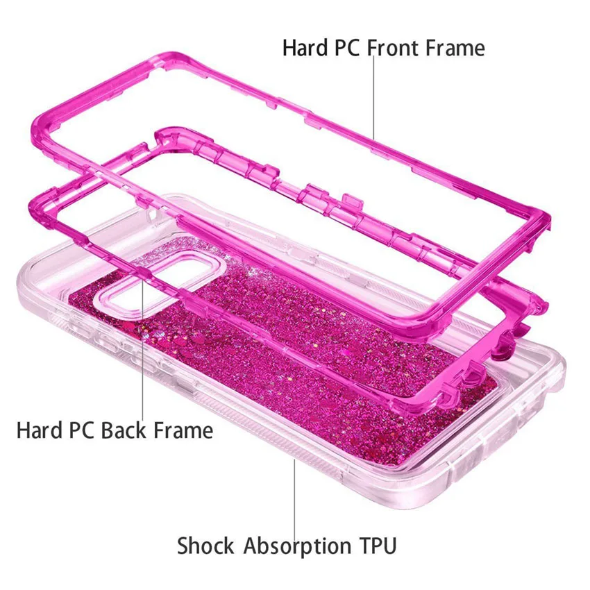3 в 1 блеск 3D, расшитая сверкающими движущаяся жидкость прозрачный противоударный ТПУ чехол для Galaxy S10 S10 Note 9 S9 + S8 чехол