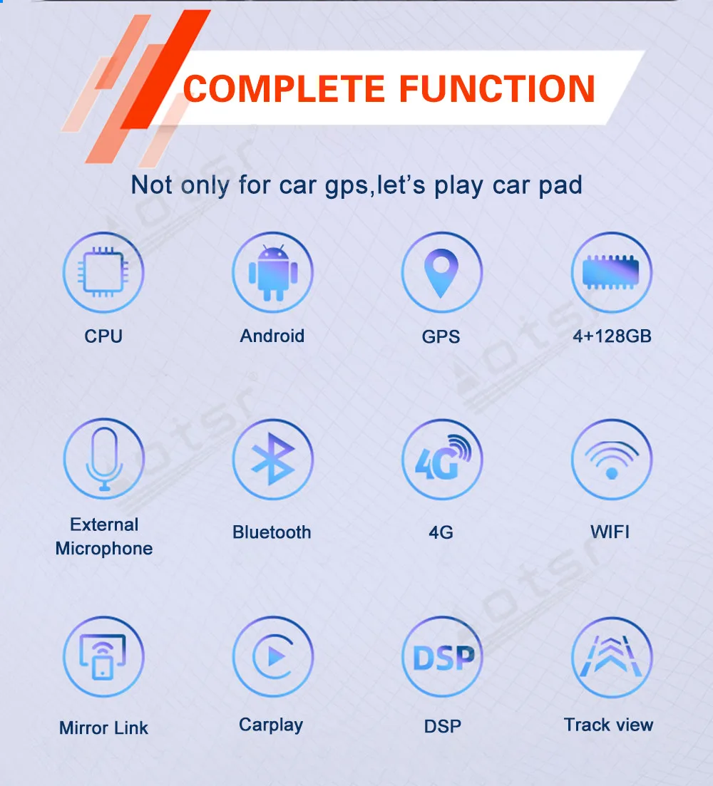1: Поддержка DSP 2: Поддержка CARPLAY 3: Поддержка Android AUTO 4: поддержка голосового управления: английский 5: поддержка Bluetooth 5,0 6: Поддержка Wifi/поддержка сети 3G/4G 7: емкостный сенсорный экран/разрешение HD 1920*1080 IPS экран 8: Поддержка HD 1080P + Поддержка музыки без потерь 9: Поддержка загрузки приложений Android и Google play store 10: емкостный сенсорный экран/разрешение HD IPS экран 11: Поддержка gps-карты и поддержка онлайн-карты, поддержка Google Map. 12: Поддержка AUX-IN аудио, с 2 usb-портами 13: Поддержка управления рулевым колесом 14:OSD язык: английский/русский/французский/немецкий/испанский/итальянский/арабский/Португальский/Турецкий/тайский/Польский/иврит Все 53 языка