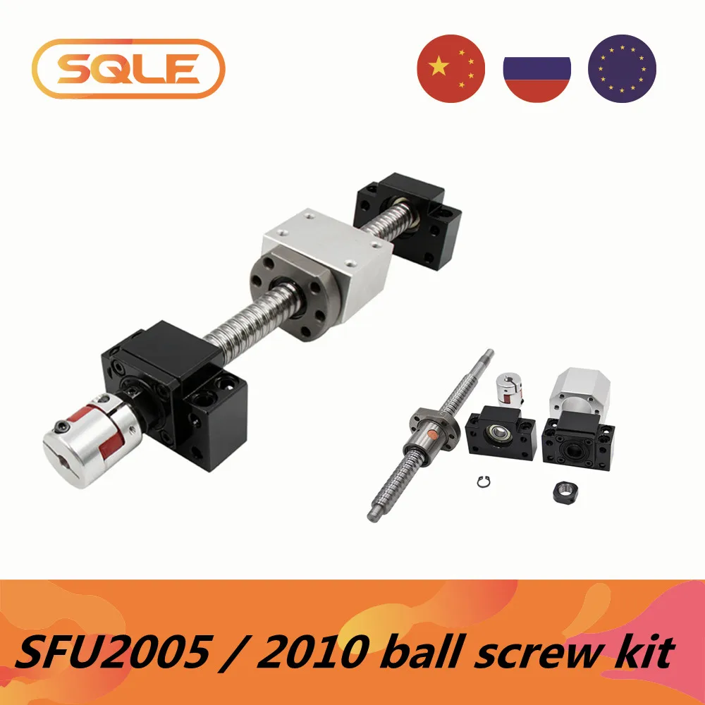 Шариковый винт для склада в ЕС SFU2005 SFU2010 300 мм-2100 мм, Концевая обработка с BK15 BF15 + DSG20H + муфта 8x1214x12 для ЧПУ