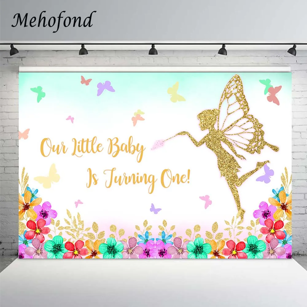Фон для фотографий Mehofond с изображением бабочек и сказочных цветов, для дня рождения девочки, для фотостудии