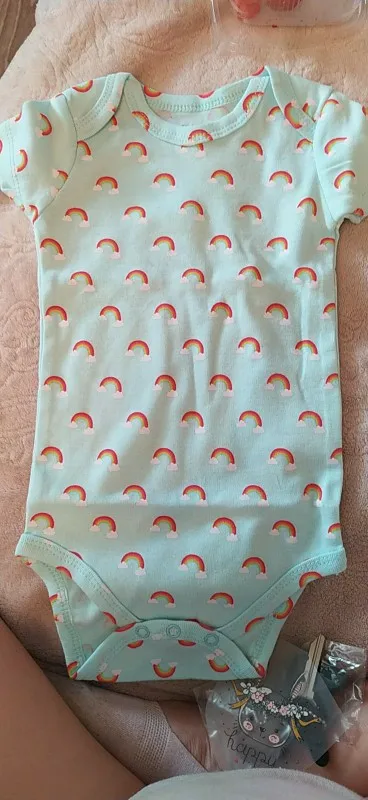 Замовлення прийшло швидко на укрпочту. Колір як на фото. Бодік не широкій, якщо дитинка повненька, то мабуть буде вузький. За розмір поки що сказати не можу, бо брала на виріст. Пізніше доповню відгук.