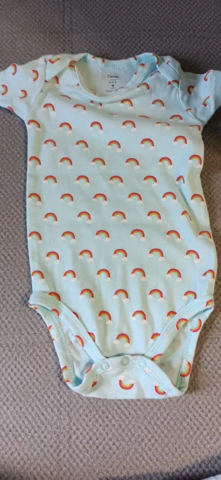Бодик очень красивый, нежно голубой цвет с яркими радугами. На месяцев 6-7 думаю подрйдет