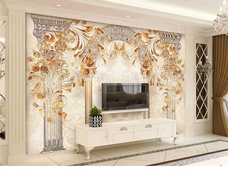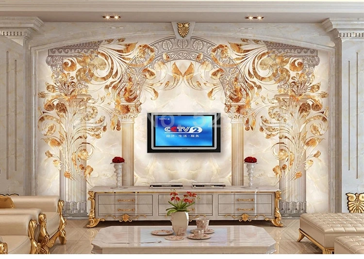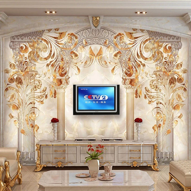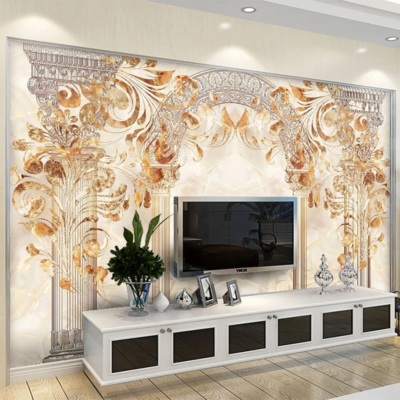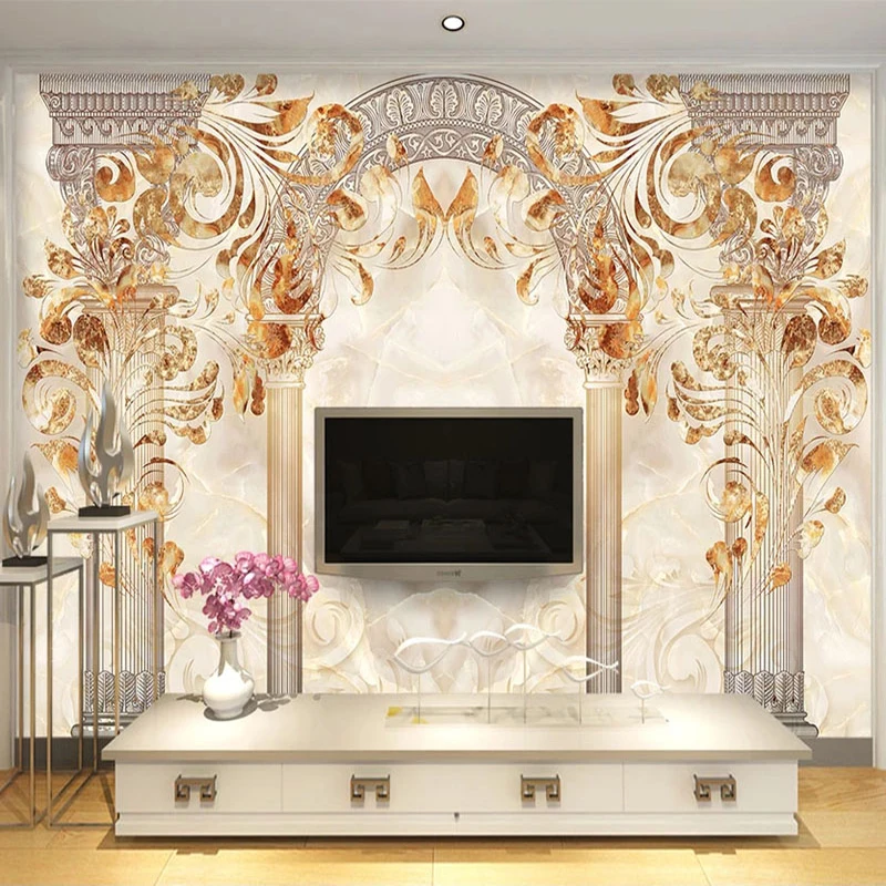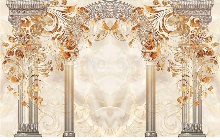 Пользовательские 3D Настенные обои мраморная плитка цветочный узор Европейский стиль Арка римская колонна Гостиная ТВ фон настенная живопись