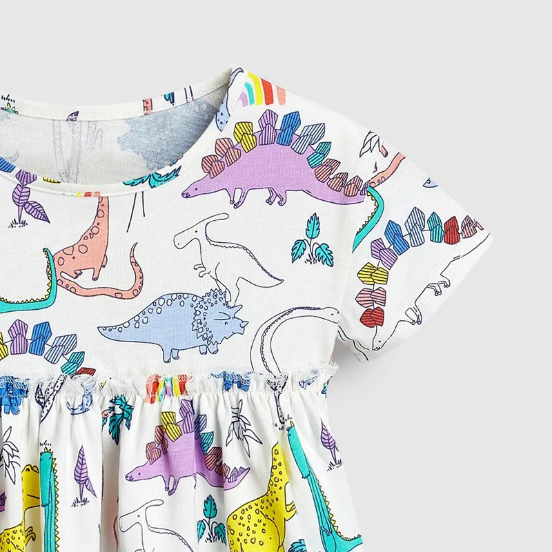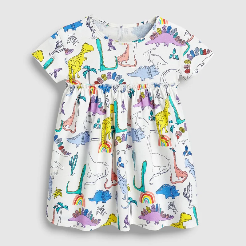 Одежда для маленьких девочек 2021 Новое летнее Брендовое платье детские хлопковые повседневные платья с короткими рукавами и принтом динозавра S0917