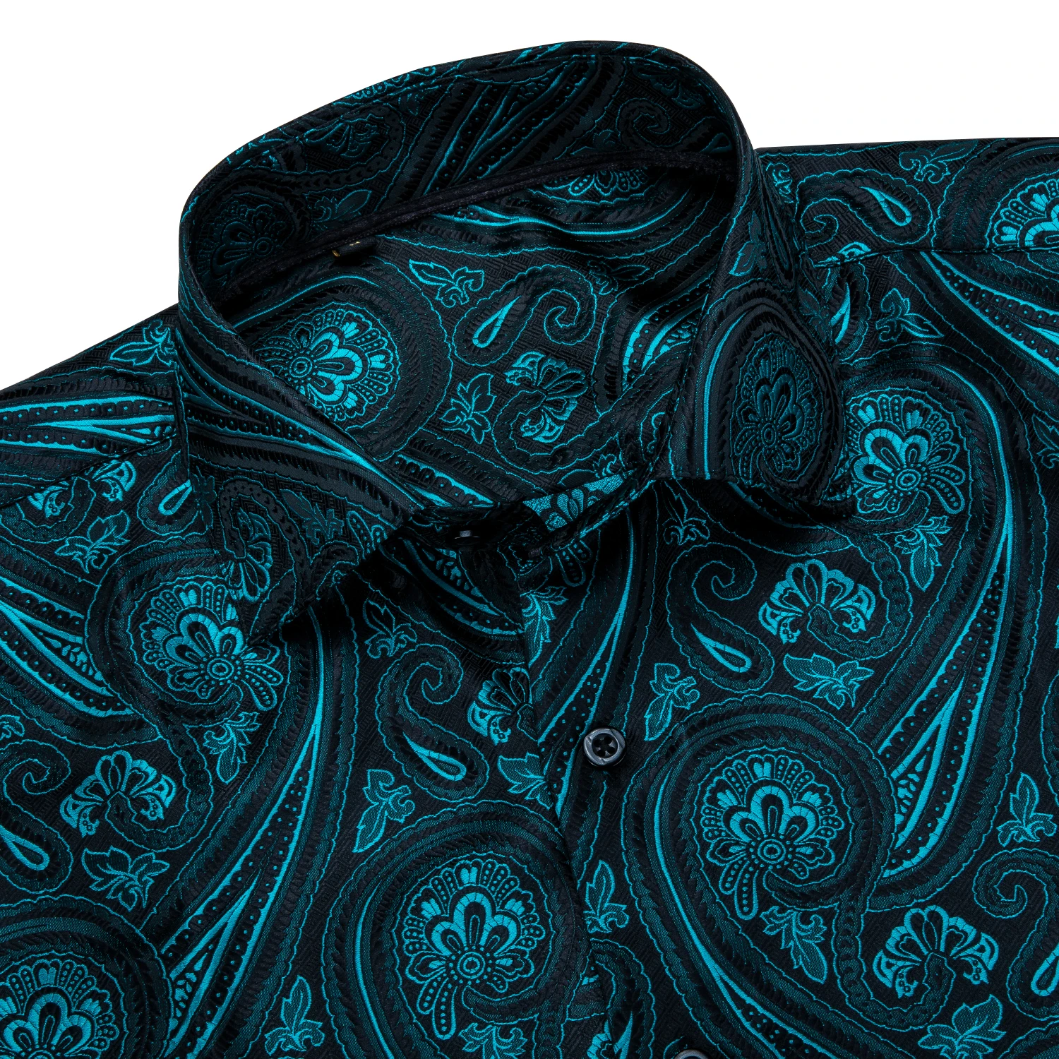 Высококачественные черные осенние мужские шелковые рубашки с цветоч...