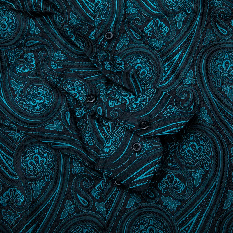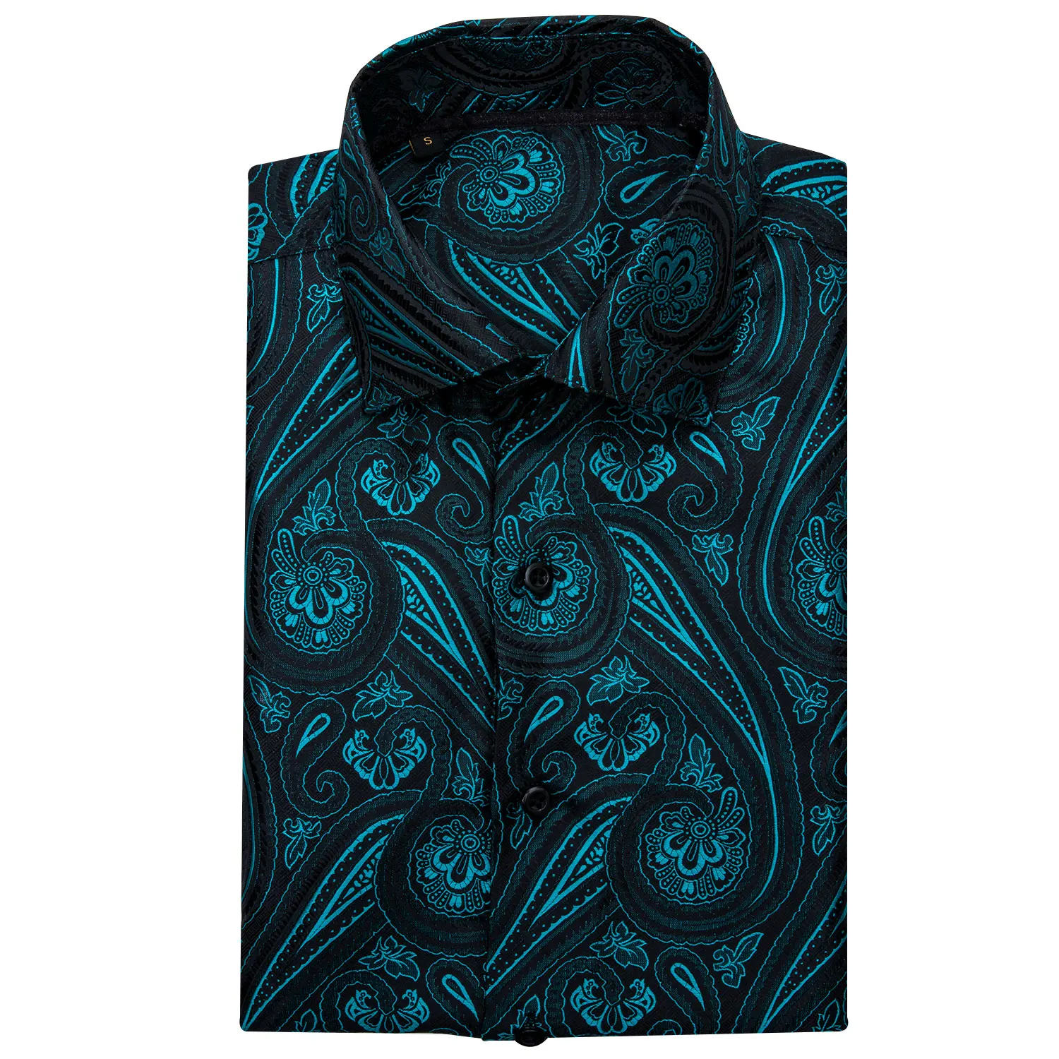 Высококачественные синие бирюзовые осенние мужские шелковые рубашки...