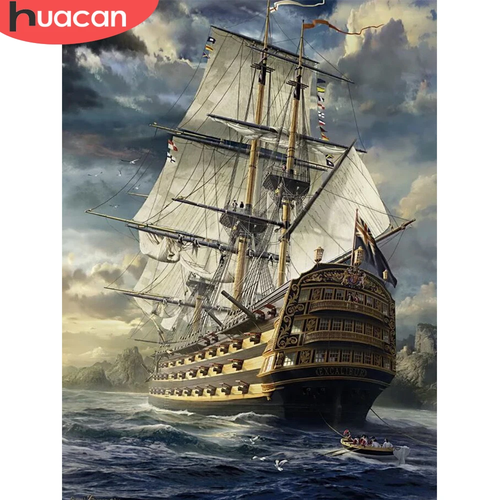 Картина для полностью Квадратный бриллиант, 5D HUACAN, вышивка крестиком, лодка, алмазная вышивка сделай сам, мозаика, стразы, пейзаж, домашний декор