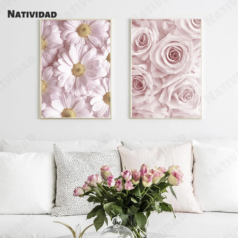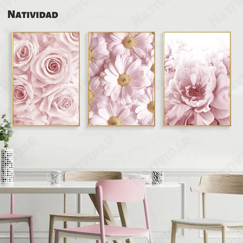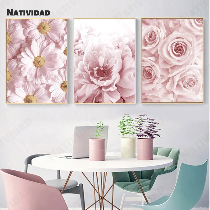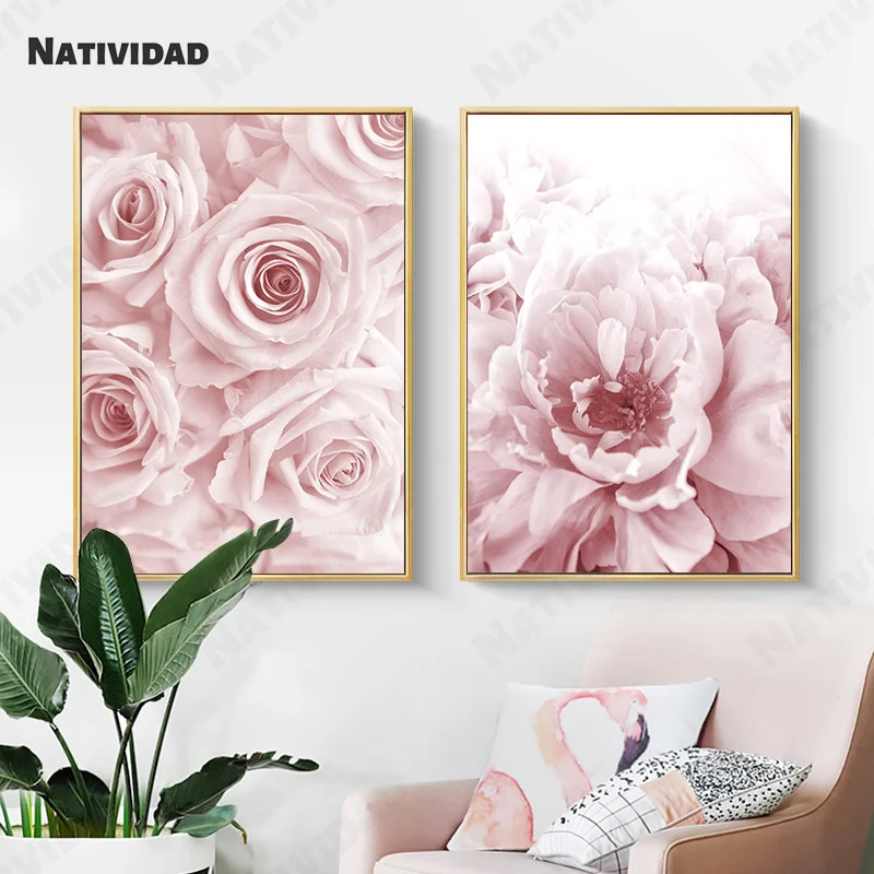Постер с цветами и растениями, розовые пионы, розы, цветок, растения, Картина на холсте, Настенная картина в скандинавском стиле, декоративное искусство
