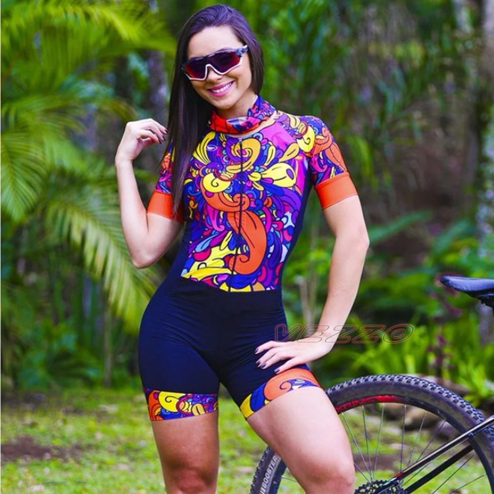 Женский велосипедный костюм Vezzo, Женская велосипедная одежда с обезьянами, комбинезоны, летняя одежда, комплект Tumblr, велосипедный наряд с коротким рукавом и гелем