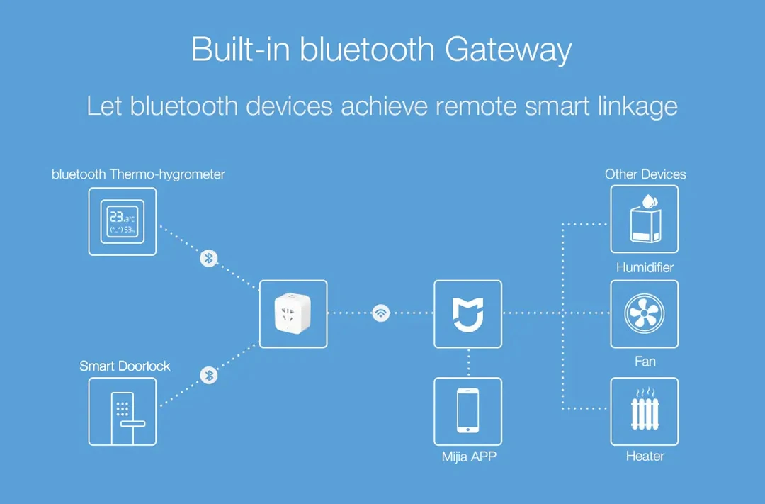 Встроенный шлюз Bluetooth может не только удаленно просматривать данные устройства Bluetooth в приложении Mijia после подключения к устройству Bluetooth, но и реализовывать связь с другими устройствами Mijia через настройки.