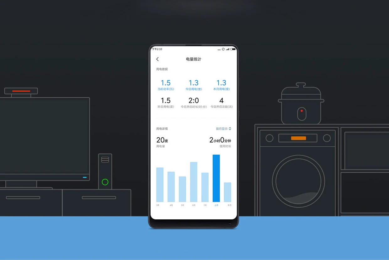 Просматривая ежедневное/ежемесячное потребление электроэнергии через приложение, цифровое мастерство поможет вам лучше настроить время использования электроприборов.* Функция статистики электричества, непрофессиональное измерительное оборудование, только для справки.