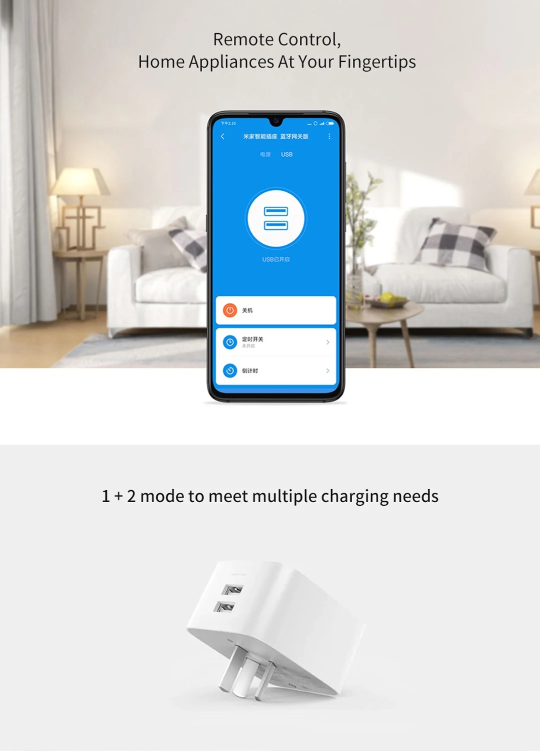 Установите питание регулярно перед сном каждую ночь через приложение Mi Jia, чтобы защитить дом от чрезмерного потребления. Рекомендуемая Функция: переключатель времени