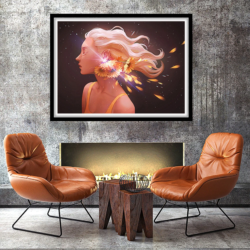 Картина из страз 5D мультяшная красивая девушка, цветок, Сказочная ...