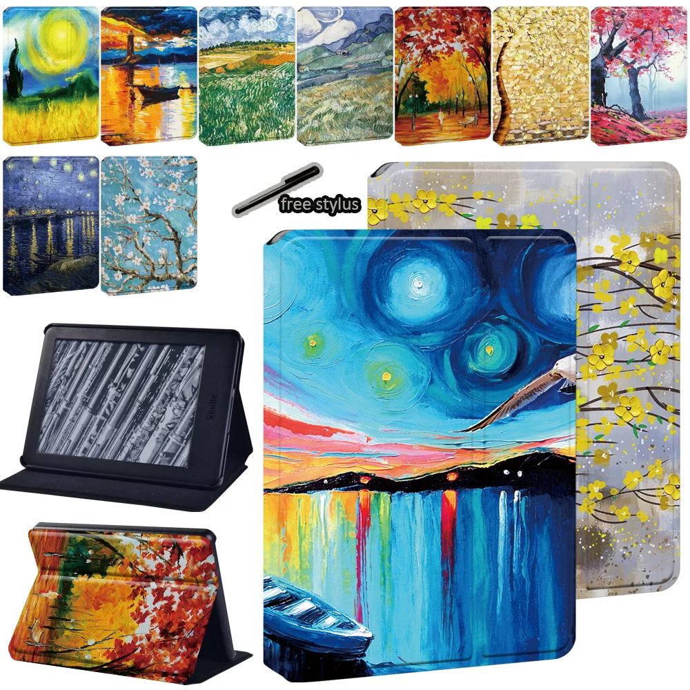 Чехол-подставка для планшета из искусственной кожи, для Amazon Kindle Paperwhite 1234Kindle 10th Gen серия масляной живописиKindle 8th Gen 2019