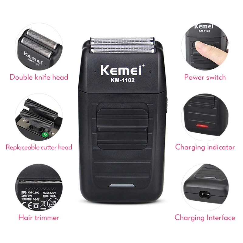 Бритва Kemei 1102 перезаряжаемая простая электробритва, Мужская машинка для стрижки волос, триммер для бороды, лезвие для бритья