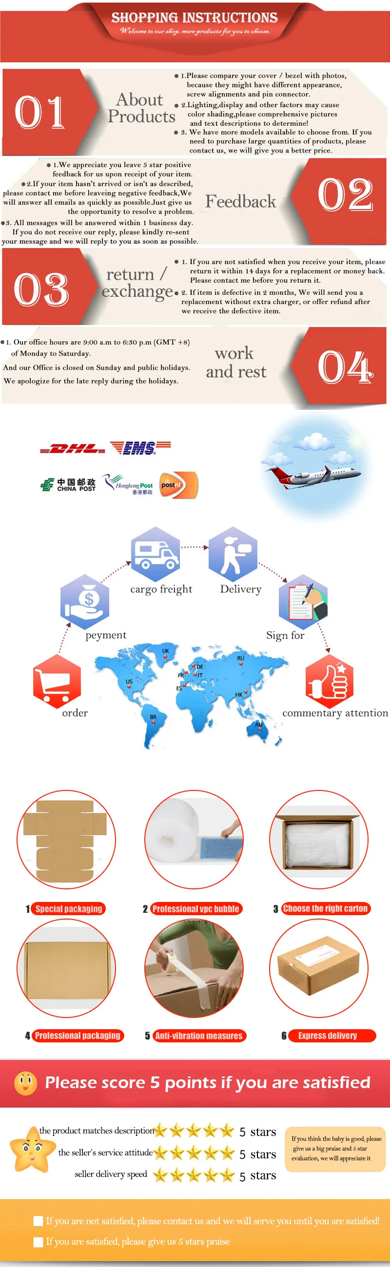 3. Доставка через ePacket, AliExpress Стандартная доставка, EMS, DHL, UPS и т. д., покупатели могут выбрать свой собственный соответствующий вид транспорта.