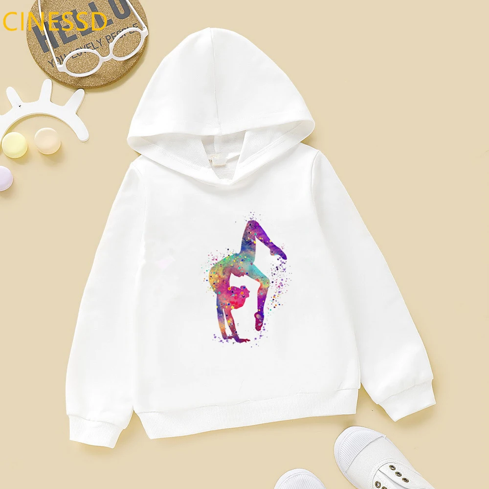 Милые белые толстовки для девочек с художественным принтом гимнасти...