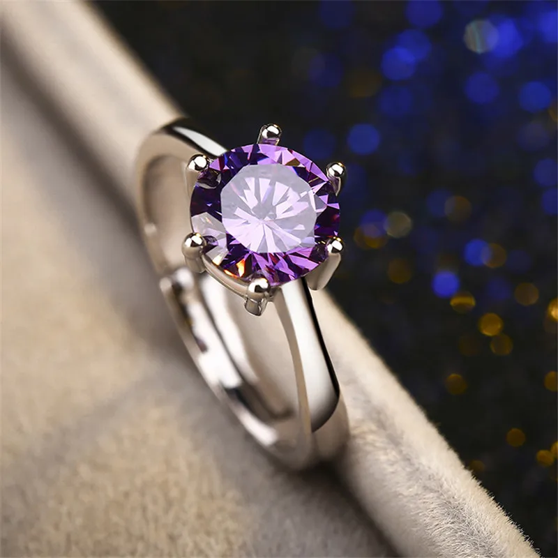 Милое женское кольцо с белым фиолетовым кристаллом и камнем, очаровательное серебряное тонкое обручальное кольцо для женщин, роскошное круглое обручальное кольцо с цирконием