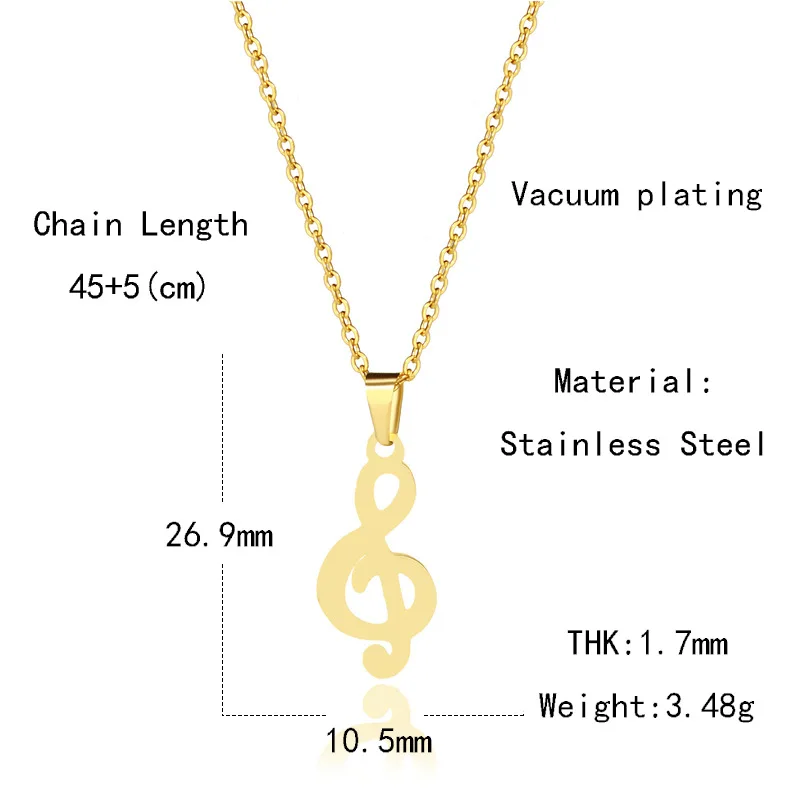 Цепочка с подвеской в виде музыкальной ноты из нержавеющей стали