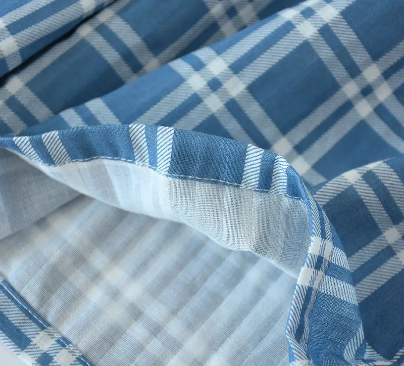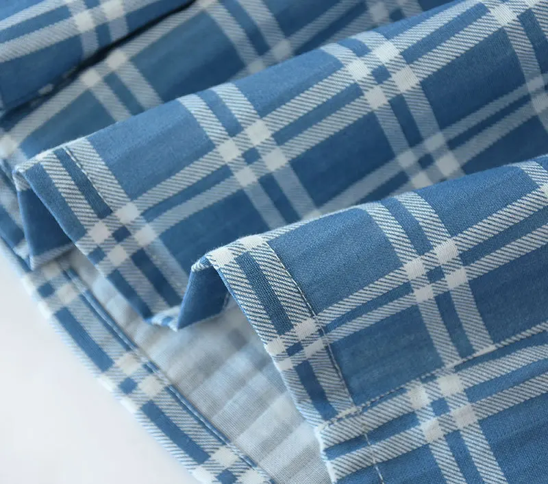 2021 летняя одежда для сна, мужские хлопковые марлевые брюки, клетч...